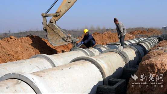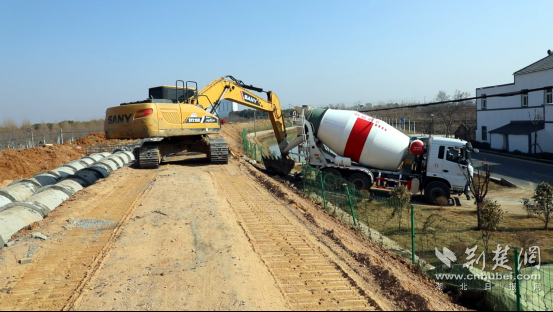 在孝昌縣鄒崗鎮(zhèn)滾子河流域治理項(xiàng)目施工現(xiàn)場,大型機(jī)械設(shè)備轟鳴作響,熟練地將水泥運(yùn)送到溝渠的涵管處,工人配合默契,緊張有序地往涵管接縫處進(jìn)行灌漿。目前,該村2.72公里的引水渠修復(fù)工程正在加緊施工。