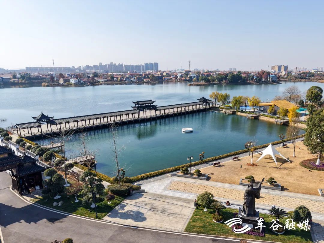 冬日暖陽下,古樸典雅的建筑歷史感滿滿,諸葛像、武侯池、濯纓水閣錯落有致,三國歷史文化長廊雛形初現(xiàn)。當(dāng)天,記者實地探訪軍山諸葛城,于古色古香的黛瓦飛甍間,品味原汁原味的三國文化。