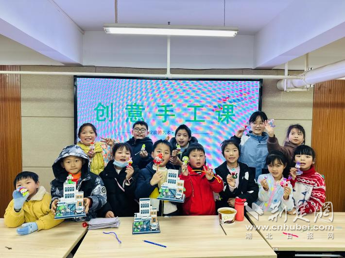 “爸爸媽媽白天要上班,在這里我可以和老師同學(xué)們一起玩,寒假一點(diǎn)都不無聊了?!痹谑止ふn上,在志愿者的引導(dǎo)下,何紫琳與同學(xué)們一起制作小蛇,親手完成的作品將作為社區(qū)公共空間的裝飾,慶祝新年的到來。