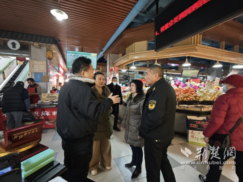 嚴密開展農(nóng)貿(mào)市場“優(yōu)秩序保安全迎新年”專項督查行動,分管領(lǐng)導(dǎo)帶隊檢查了東湖景園市場,重點檢查了市場內(nèi)外環(huán)境衛(wèi)生、長江漢江魚禁售、計量電子秤、保供穩(wěn)價、消防安全等情況。