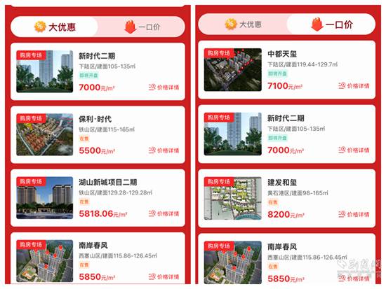 線上,該市在東楚優(yōu)房APP上,開辟“‘宜居黃石’春節(jié)返鄉(xiāng)安居”購房專版,各房地產(chǎn)開發(fā)項(xiàng)目按照自愿原則拿出房源,下設(shè)“一口價(jià)”和“大優(yōu)惠”2個(gè)專欄?!耙豢趦r(jià)”專欄集中展示特價(jià)房源;“大優(yōu)惠”專欄集中展示特價(jià)房外的其它優(yōu)惠房源。