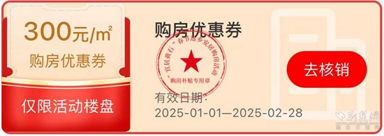 值得注意的是,此次專場活動(dòng)的“購房優(yōu)惠券”僅限在參與本次專場“大優(yōu)惠”活動(dòng)的房地產(chǎn)項(xiàng)目房源中使用,不能同時(shí)參與“一口價(jià)”優(yōu)惠活動(dòng)?!百彿績?yōu)惠券”僅限在2025年1月1日至2月28日期間使用,逾期未使用則自動(dòng)失效。