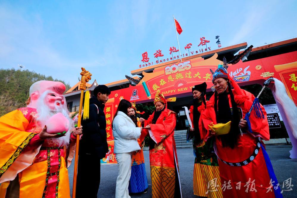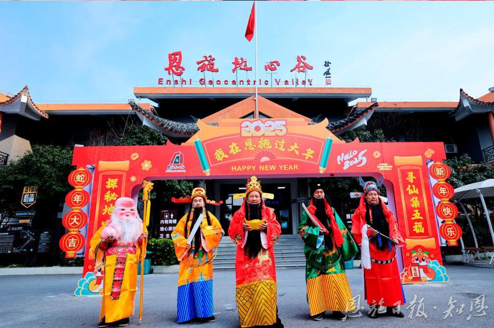 正月初二至初八,恩施地心谷景區(qū)將化身為福氣的聚集地。在這里,五路神仙——“福神”帶來吉祥如意,“祿神”賜予事業(yè)有成,“壽神”保佑健康長壽,“喜神”傳遞歡樂喜悅,“財神”則為您聚攏滾滾財源。他們將在地心谷的各個神秘角落,等待著與您相遇,為您和家人送上最真摯的新春祝福,參與“集五?!被顒樱占案?、祿、壽、喜、財”五路神仙的祝福,還能讓您的新年好運連連。