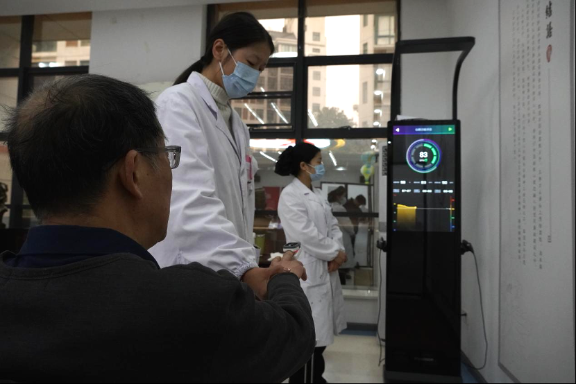 清晨8點(diǎn),東湖站內(nèi)智能導(dǎo)檢系統(tǒng)已有序運(yùn)轉(zhuǎn)。81歲的端木爺爺在AI健康助手引導(dǎo)下,僅用15分鐘便完成視力篩查、無創(chuàng)心肺功能檢測(cè)及三維體態(tài)分析。"這臺(tái)設(shè)備還能語音播報(bào)結(jié)果,對(duì)我們老花眼特別友好。"東湖站新引入的A5智能體檢儀集成38項(xiàng)體征數(shù)據(jù)采集功能,通過云端算法即時(shí)生成運(yùn)動(dòng)安全評(píng)估報(bào)告,為老年人居家鍛煉提供精準(zhǔn)指導(dǎo)。