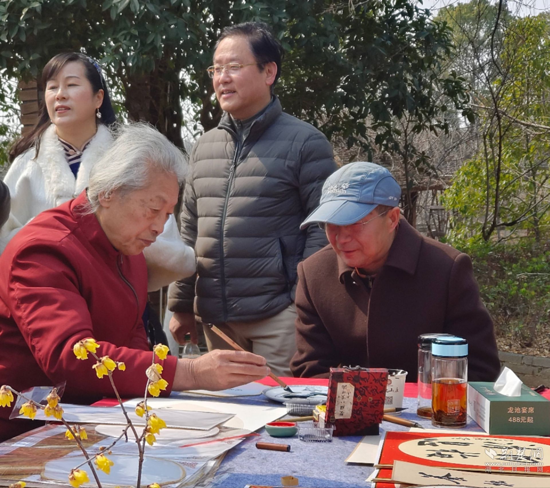 在賞梅之余,游客們還能欣賞到形式多樣的現(xiàn)場(chǎng)表演,增添無限樂趣。更值得一提的是,書畫協(xié)會(huì)的書法家們現(xiàn)場(chǎng)即興揮毫潑墨,墨香與梅香相互交融,一幅幅佳作瞬間被游客們爭相求取。