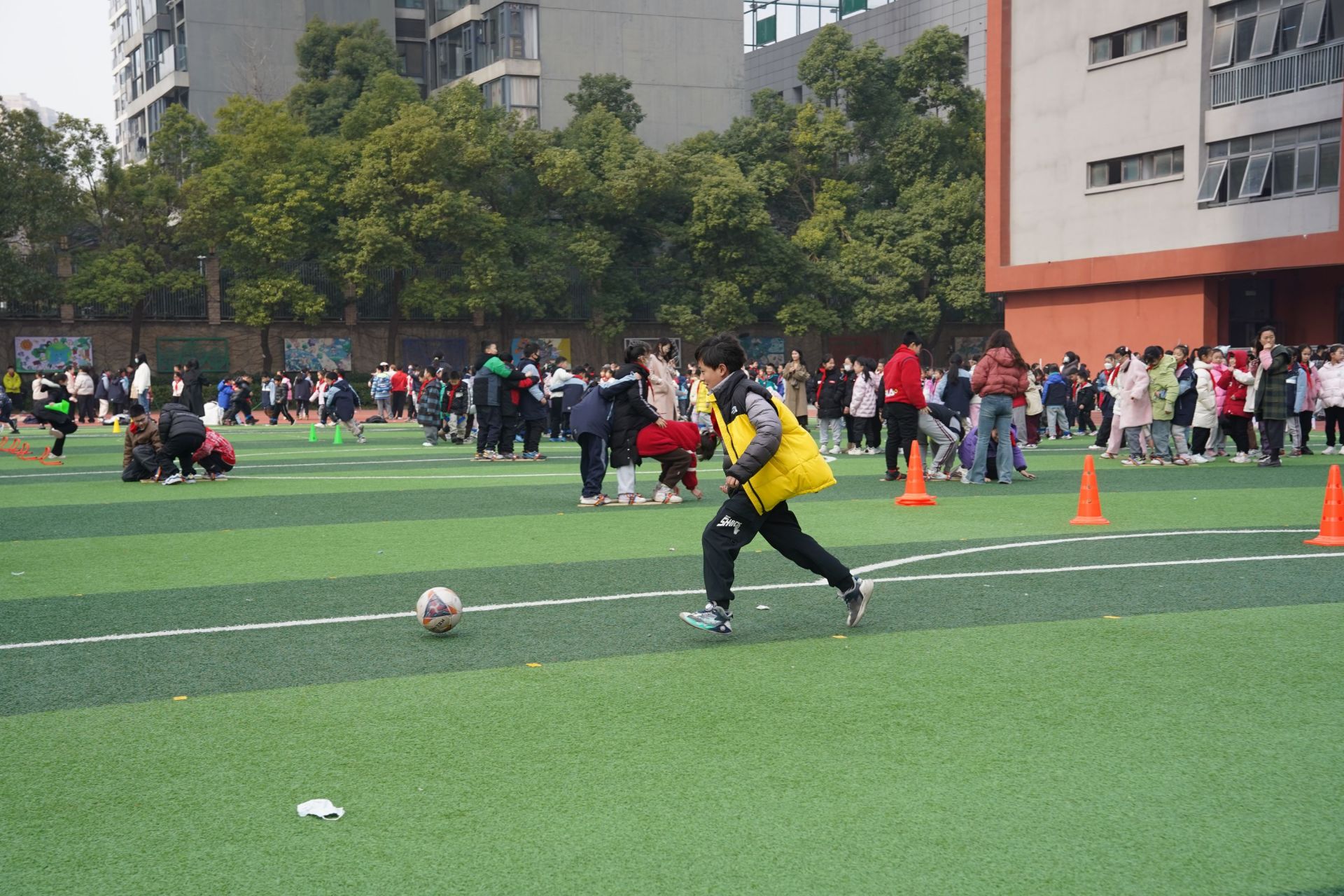 東湖實(shí)驗(yàn)學(xué)校學(xué)生在操場活動。張媛 攝