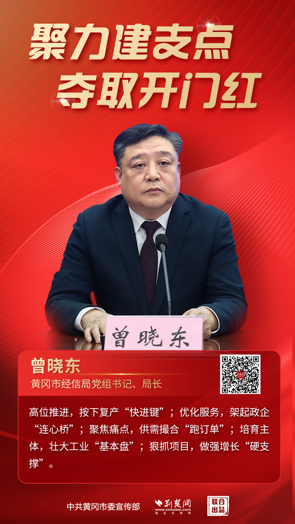 3月13日,黃岡市“聚力建支點·奪取開門紅”縣市長(局長)話經(jīng)濟首場新聞發(fā)布會舉行。會上,黃岡市政府、市發(fā)改委、市經(jīng)信局、市商務(wù)局、市文旅局等相關(guān)負責人介紹全市推動一季度經(jīng)濟“開門紅”的具體舉措和初步成效,并回應(yīng)社會關(guān)切。