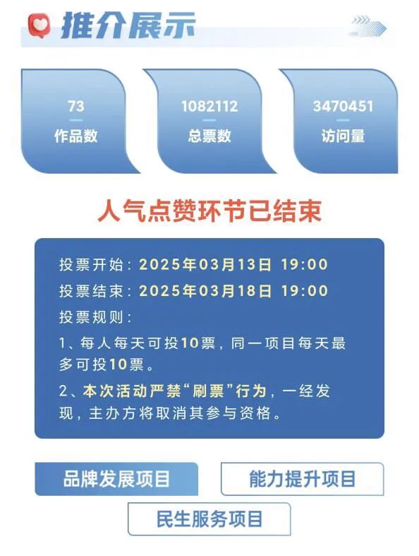 3月14日-18日,為期5天的網(wǎng)絡(luò)投票總訪(fǎng)問(wèn)量超300萬(wàn)人次,總票數(shù)超過(guò)108萬(wàn)。