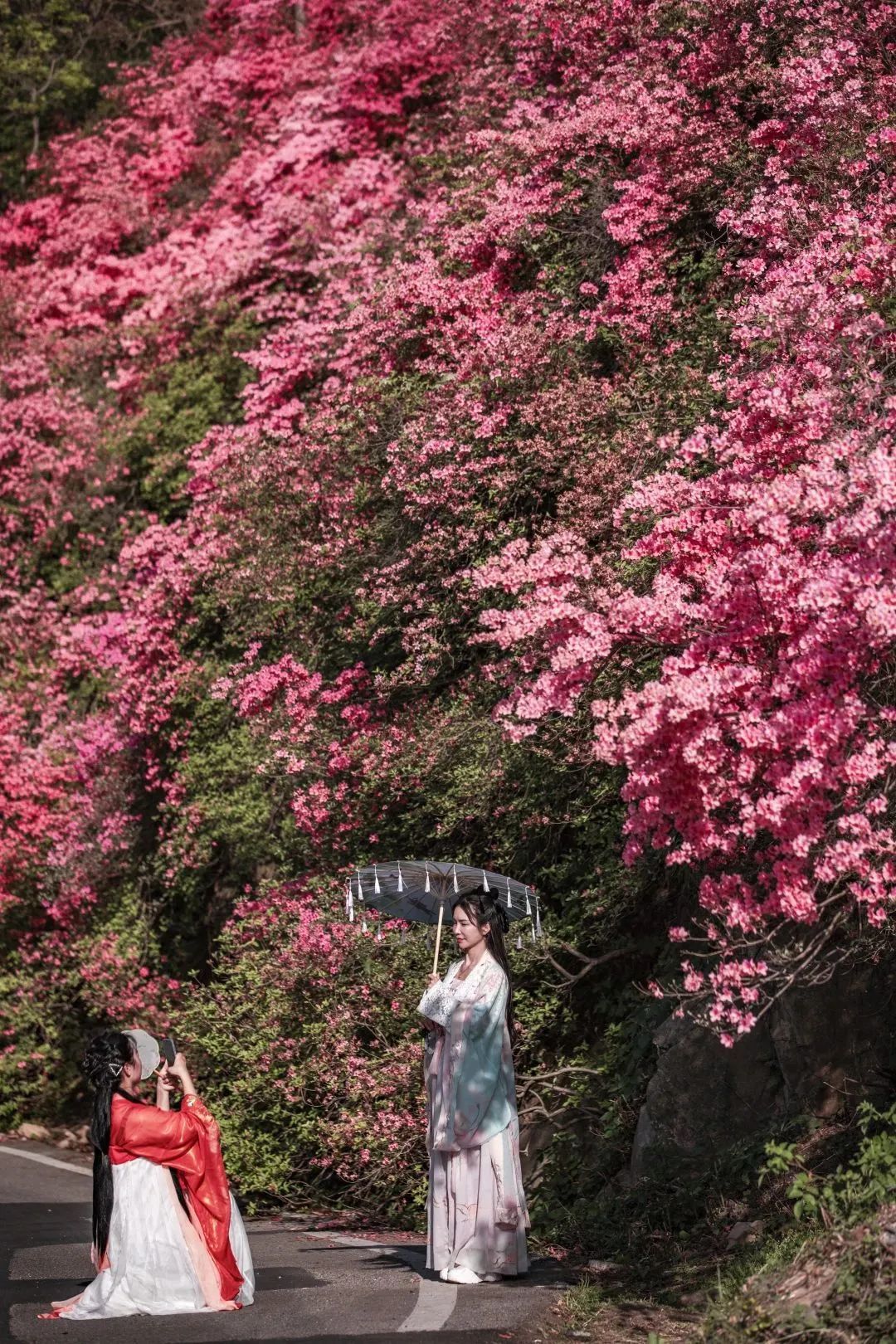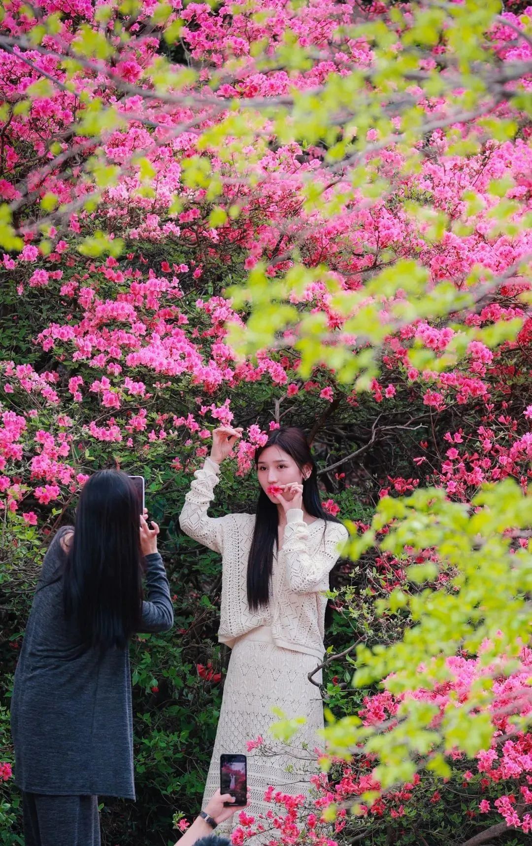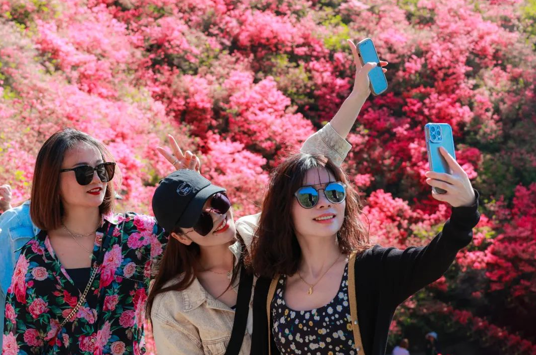 原來(lái)春天也會(huì)玩接力賽,一棒更比一棒絢爛?!斑@哪是賞花?簡(jiǎn)直是看一場(chǎng)杜鵑花神盛大的換裝表演!”