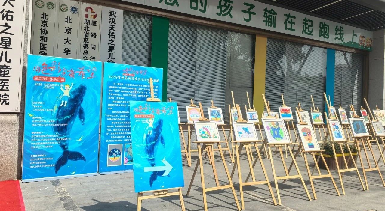 2025年4月2日,在第18個(gè)世界孤獨(dú)癥關(guān)注日當(dāng)天,“星星與江豚的對(duì)話”繪畫巡展于武漢西北湖公園畔溫暖開展,30幅由孤獨(dú)癥兒童創(chuàng)作的畫作吸引數(shù)百名市民駐足。