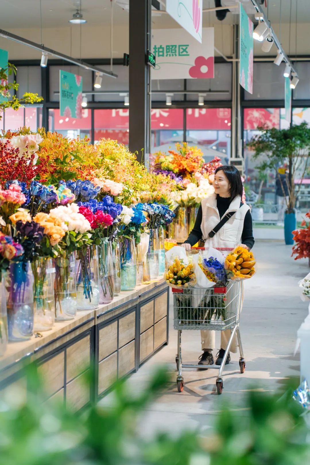 市民程女士專程開車從武昌來鮮花小鎮(zhèn)買花。她說,漢口北現(xiàn)在很適合周末打卡,她和家人經(jīng)常過來玩,買鮮花、吃海鮮、喝咖啡、逛寵物店。