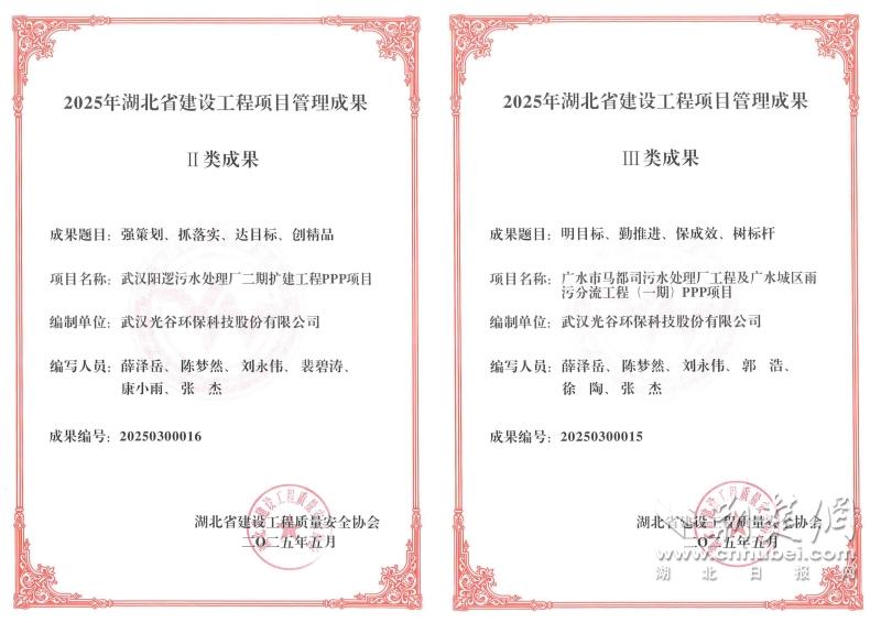 荊楚網(wǎng)(湖北日報網(wǎng))訊(通訊員 董高宣)近日,湖北省建設(shè)工程質(zhì)量安全協(xié)會召開2025年度湖北省建設(shè)工程項(xiàng)目管理成果交流發(fā)布會。湖北聯(lián)投東湖高新集團(tuán)旗下光谷環(huán)保申報的兩項(xiàng)成果,分別斬獲項(xiàng)目管理成果Ⅱ類獎、Ⅲ類獎。