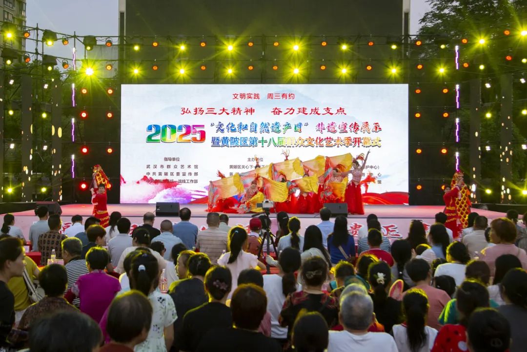 6月11日晚,2025年“文化和自然遺產(chǎn)日”非遺宣傳展示暨第十八屆群眾文化藝術(shù)季在黃陂區(qū)前川街黎元洪廣場(chǎng)開(kāi)幕。通過(guò)多元化的非遺展示與文藝演出為市民帶來(lái)一場(chǎng)沉浸式的文化盛宴。