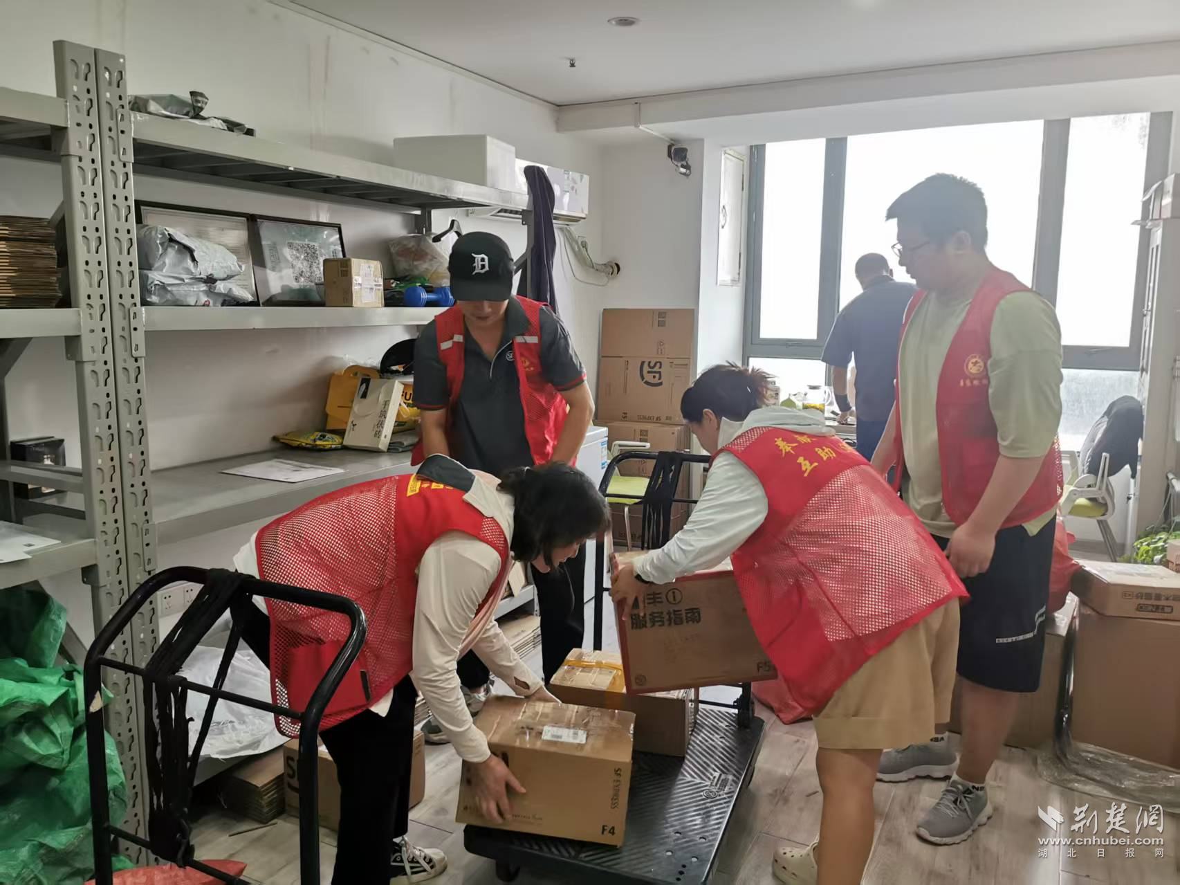 頂著烈日、扛著包裹,黨員們穿梭在樓宇之間,爬樓送貨、聯(lián)系客戶、確認簽收,一趟下來個個大汗淋漓。