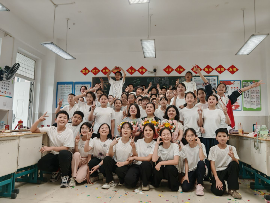 本來以為,我會站在原地看學生奔赴山海。沒想到,我也收到了超大的驚喜。離校前,家長為班級組織了一場溫馨的活動,還播放了一段長達6分鐘的“回憶殺”視頻,太令我感動了!