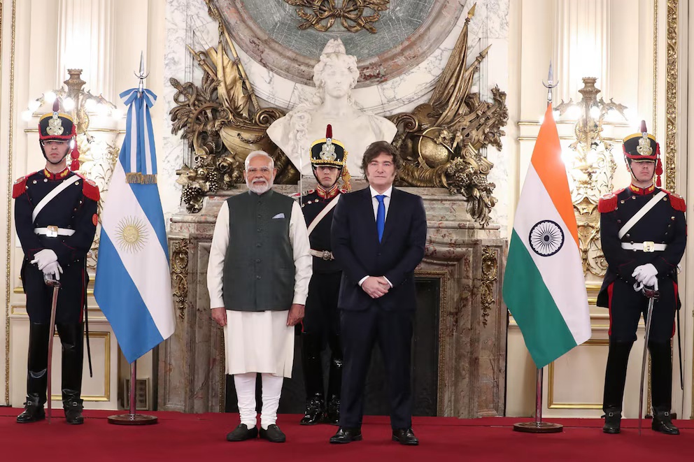 5日,阿根廷總統(tǒng)米萊在總統(tǒng)府會見了莫迪,兩人的會談議題主要集中在農(nóng)業(yè)、鋰礦、能源和核能等戰(zhàn)略領域的貿(mào)易合作。