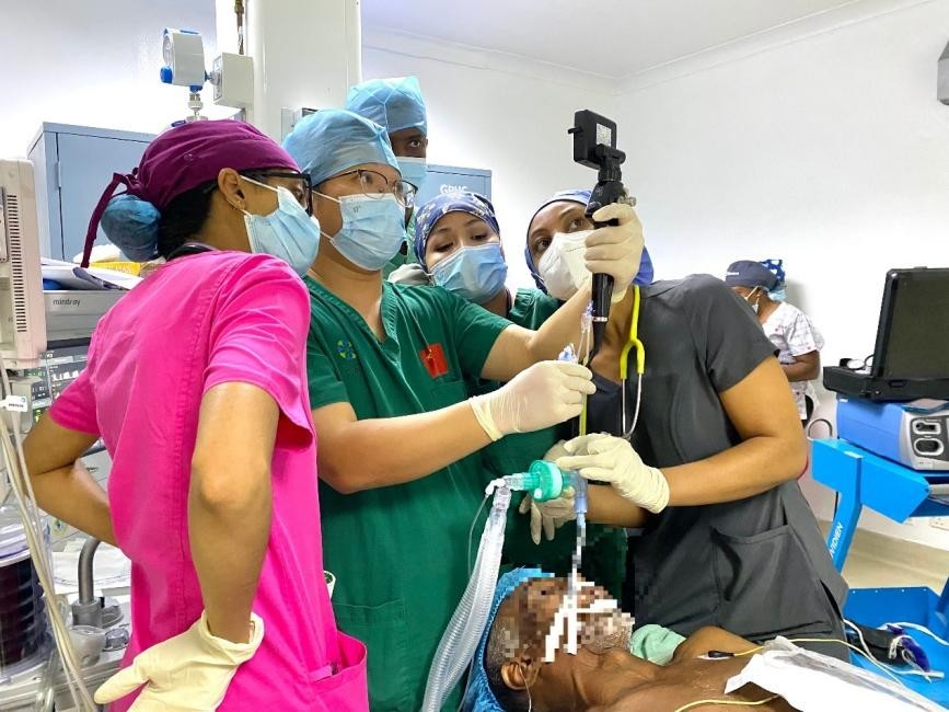 這項新技術(shù)吸引了該院麻醉科多位醫(yī)生現(xiàn)場觀摩。杜伯祥演示了關(guān)鍵步驟,并對技術(shù)原理、適應(yīng)癥把握及操作要點等進(jìn)行現(xiàn)場講解。該院醫(yī)生卡諾表示:“中國醫(yī)療隊持續(xù)為我們打開新技術(shù)的大門,這次演示清晰實用,是提升本地麻醉實踐能力的寶貴一課?!?/p>