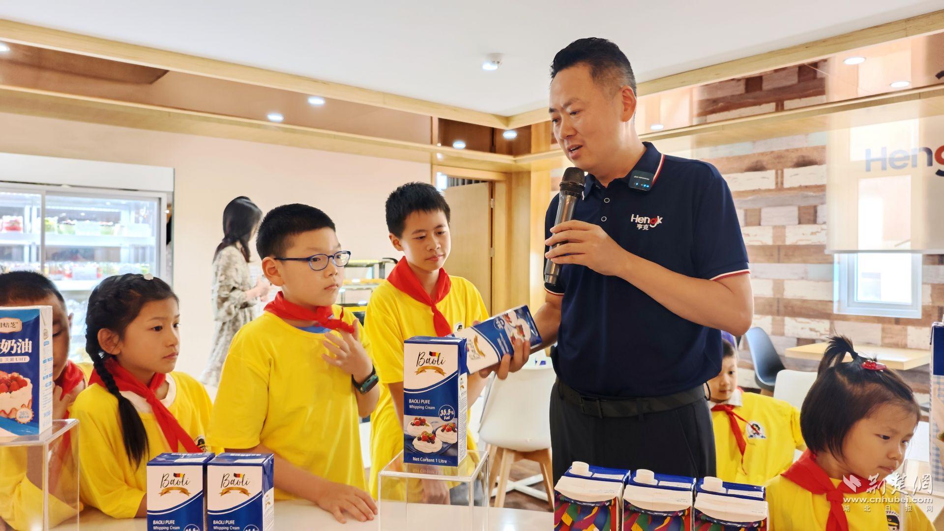 “亨克的稀奶油常見于蛋糕、甜品、冰激凌、奶茶以及西餐調(diào)湯等諸多美食中。其主要原料是從生牛乳中分離出來的乳脂肪,經(jīng)過先進的生產(chǎn)工藝加工而成。稀奶油需在 2 - 6度的環(huán)境下儲存,以保證品質(zhì)?!蔽錆h亨克工作人員向孩子們講解道。