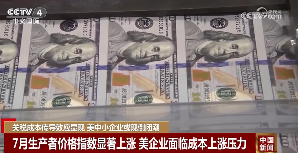 央視網(wǎng)消息:美國勞工部近日發(fā)布的數(shù)據(jù)顯示,美國7月份生產(chǎn)者價格指數(shù)(PPI)顯著上漲,漲幅超出市場預(yù)期,顯示美國產(chǎn)業(yè)鏈上游面臨新一輪通脹壓力。專家警告,關(guān)稅成本壓力正加速向下游傳導(dǎo),美國中小企業(yè)可能出現(xiàn)倒閉潮。