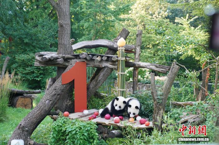中新社柏林8月22日電(記者 馬秀秀)紅色木制“1”字、以甜菜根和胡蘿卜汁為原料的冰彈珠、竹子生日蠟燭......當(dāng)?shù)貢r(shí)間22日,旅德大熊貓雙胞胎“夢(mèng)好”和“夢(mèng)甜”在柏林動(dòng)物園熊貓園的室外活動(dòng)場(chǎng)地上收獲了滿(mǎn)滿(mǎn)的生日驚喜。