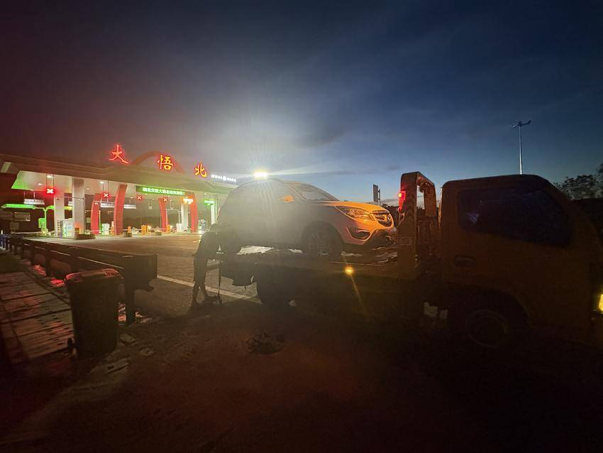 當(dāng)日16:53分,王先生駕駛一輛鄂A牌照的白色小轎車因發(fā)動(dòng)機(jī)突發(fā)故障,無法正常加速,只能低速行駛至大悟北收費(fèi)廣場后停下。車主焦急地在車旁查看情況,不知所措。