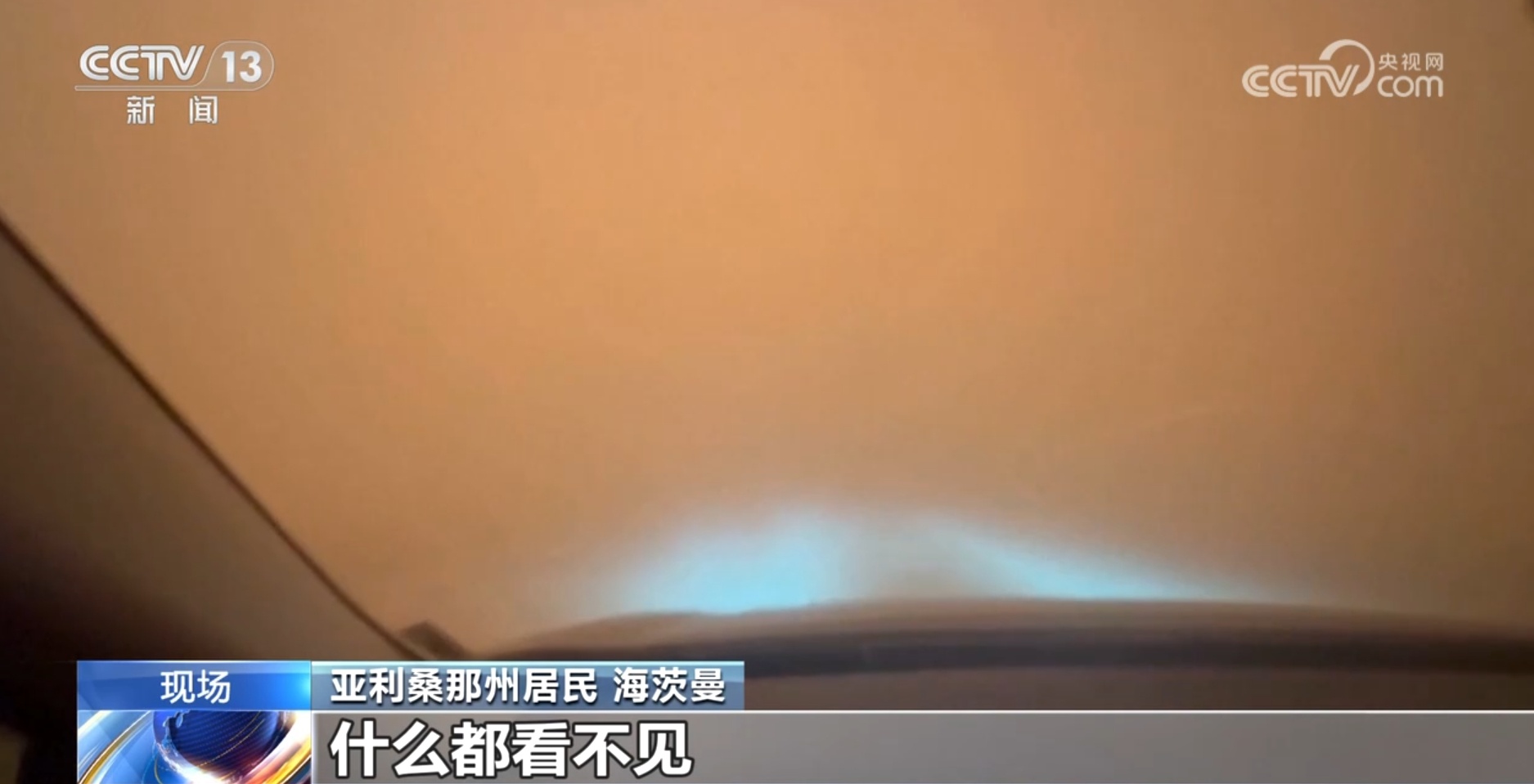 沙塵暴來(lái)襲時(shí),亞利桑那州居民海茨曼正開(kāi)車接孩子放學(xué)回家。