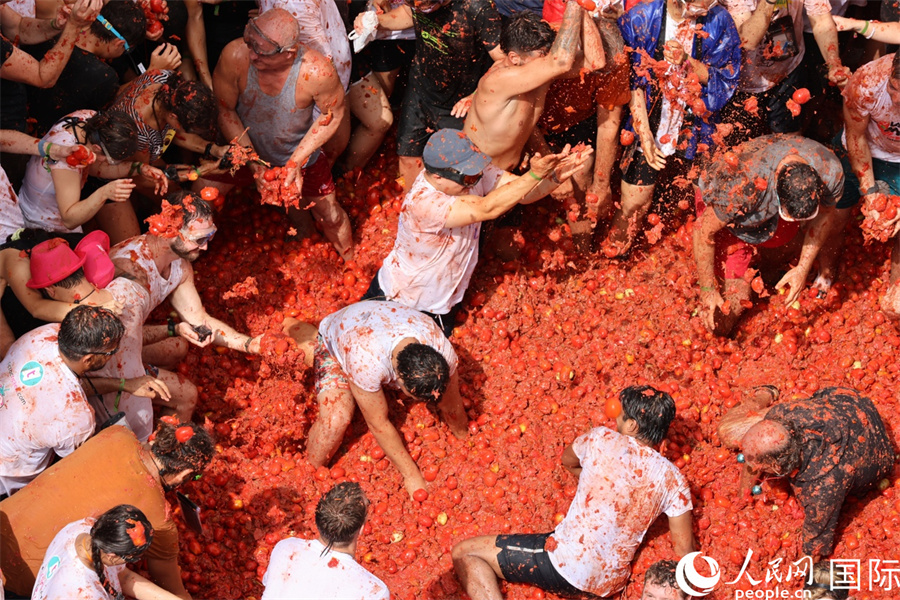 圖為人們參加“西紅柿大戰(zhàn)”。人民網(wǎng)記者 顏歡攝