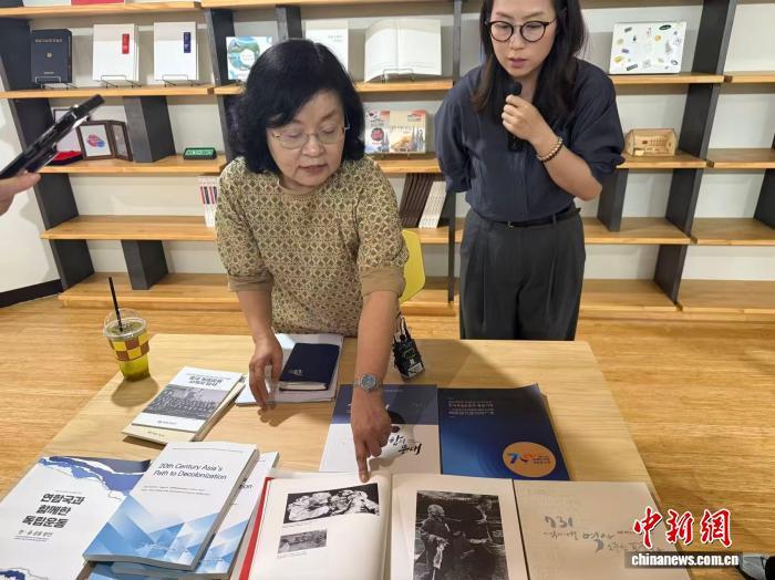 當(dāng)?shù)貢r(shí)間8月8日,韓國(guó)獨(dú)立紀(jì)念館韓國(guó)獨(dú)立運(yùn)動(dòng)史研究所所長(zhǎng)李明花(左)在韓國(guó)天安接受媒體采訪(fǎng)。中新網(wǎng)記者 劉旭 攝
