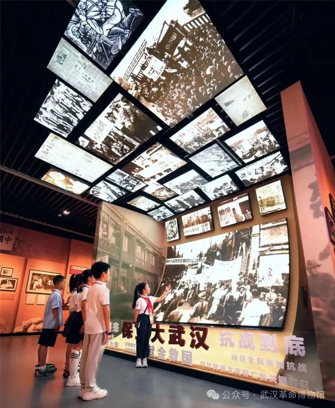 “保衛(wèi)大武漢”場景采用音頻+燈箱照片結(jié)合的方式,展示中國共產(chǎn)黨領(lǐng)導(dǎo)下的“以抗日救亡團(tuán)體為骨干,救亡書刊為導(dǎo)向,救亡活動為內(nèi)容”三位一體的抗日救亡活動,以武漢為中心,迅速席卷全國。