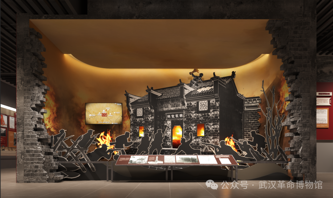 “火燒胡家祠堂”采用藝術(shù)場景+視頻結(jié)合的方式,定格侏儒山戰(zhàn)役中的胡家臺戰(zhàn)斗,生動刻畫出百姓毀家紓難與新四軍第五師并肩作戰(zhàn)的英勇精神,使觀眾身臨其境地感受到勝利來之不易。
