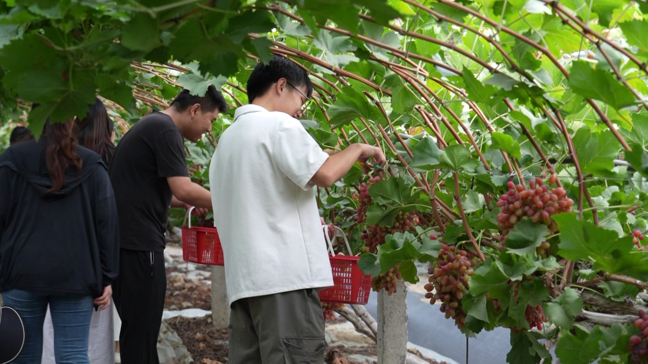 “吃了甜葡萄,還拿到了定制扇子,這趟來得值!”游客胡明樂拿著剛畫好的扇子,滿臉歡喜。