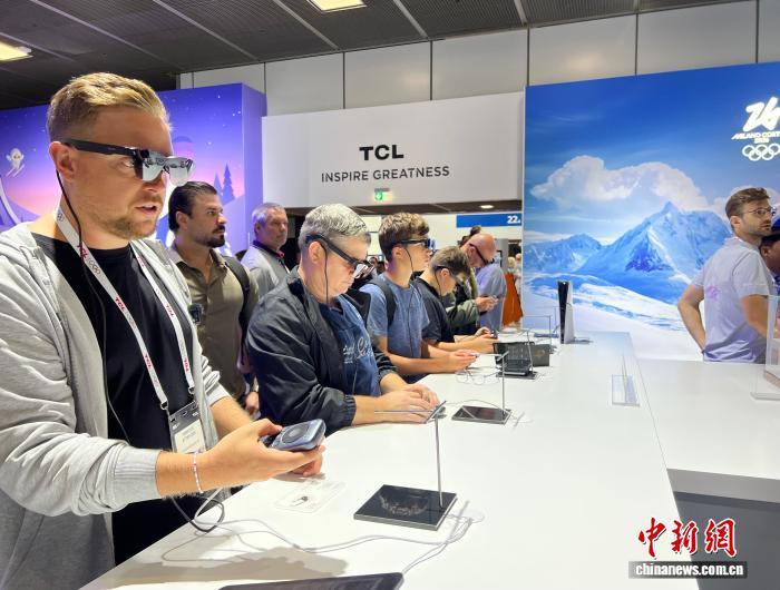 當(dāng)?shù)貢r間9月5日,2025年德國柏林國際消費電子展(IFA)在柏林會展中心開幕。圖為觀眾在TCL展區(qū)體驗雷鳥眼鏡。中新社記者 馬秀秀 攝