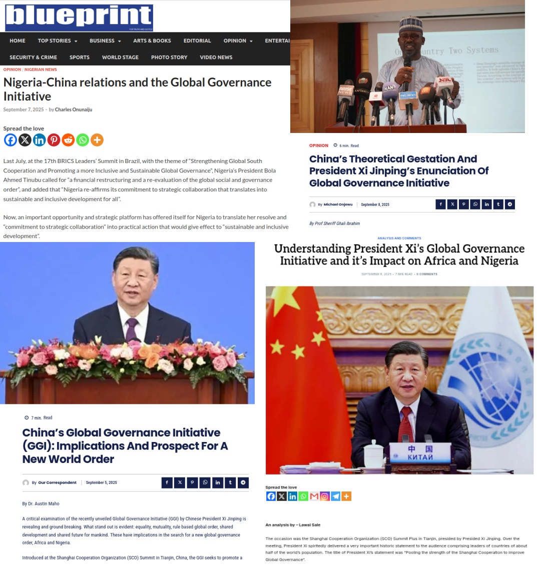 人民網(wǎng)阿布賈9月8日電(記者姜宣)近日,尼日利亞中國(guó)研究中心主任查爾斯、阿布賈大學(xué)政治學(xué)與國(guó)際關(guān)系教授謝里夫、資深媒體人馬霍和薩萊相繼在尼主流媒體分別發(fā)表題為《尼中關(guān)系和全球治理倡議》《中國(guó)的理論孕育與習(xí)近平主席對(duì)全球治理倡議的闡述》《中國(guó)的全球治理倡議:對(duì)新世界秩序的意義與前景》《理解習(xí)近平主席的全球治理倡議及其對(duì)非洲和尼日利亞的影響》的署名文章,從不同角度積極評(píng)價(jià)習(xí)近平主席提出的全球治理倡議。