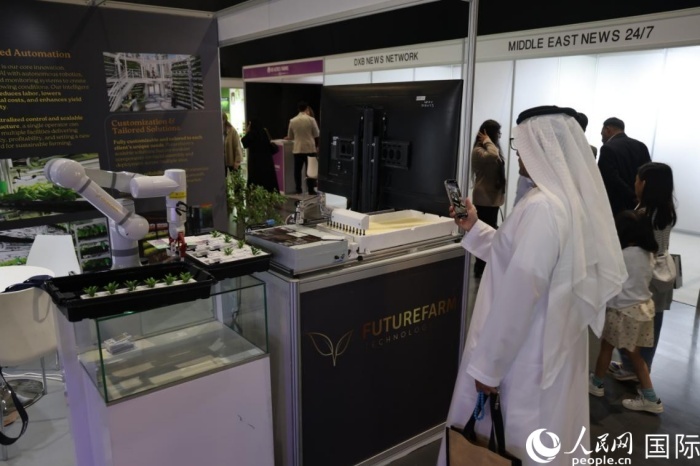在展覽現(xiàn)場,多家中國企業(yè)展示的新產(chǎn)品和新技術(shù)受到中東客商歡迎。一家位于深圳的照明企業(yè)研發(fā)的LED燈光系統(tǒng),能夠通過調(diào)整光譜組合和光照強(qiáng)度,優(yōu)化農(nóng)作物的產(chǎn)量和質(zhì)量;另一家位于中國香港的企業(yè)帶來的全自動(dòng)移栽和播種機(jī)械臂,能夠有效提高垂直農(nóng)場耕作效率,將智慧農(nóng)業(yè)里面引入其中?!爸袊诖怪鞭r(nóng)業(yè)領(lǐng)域技術(shù)優(yōu)勢明顯,我們希望與中國企業(yè)開展更多合作?!卑⒙?lián)酋無土栽培農(nóng)場經(jīng)理阿姆賈德·奧馬爾對(duì)記者說。