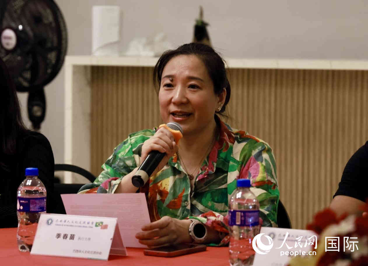巴西華人文化交流協(xié)會執(zhí)行主席季春苗在座談會上致辭。人民網(wǎng)記者 宋亦然攝