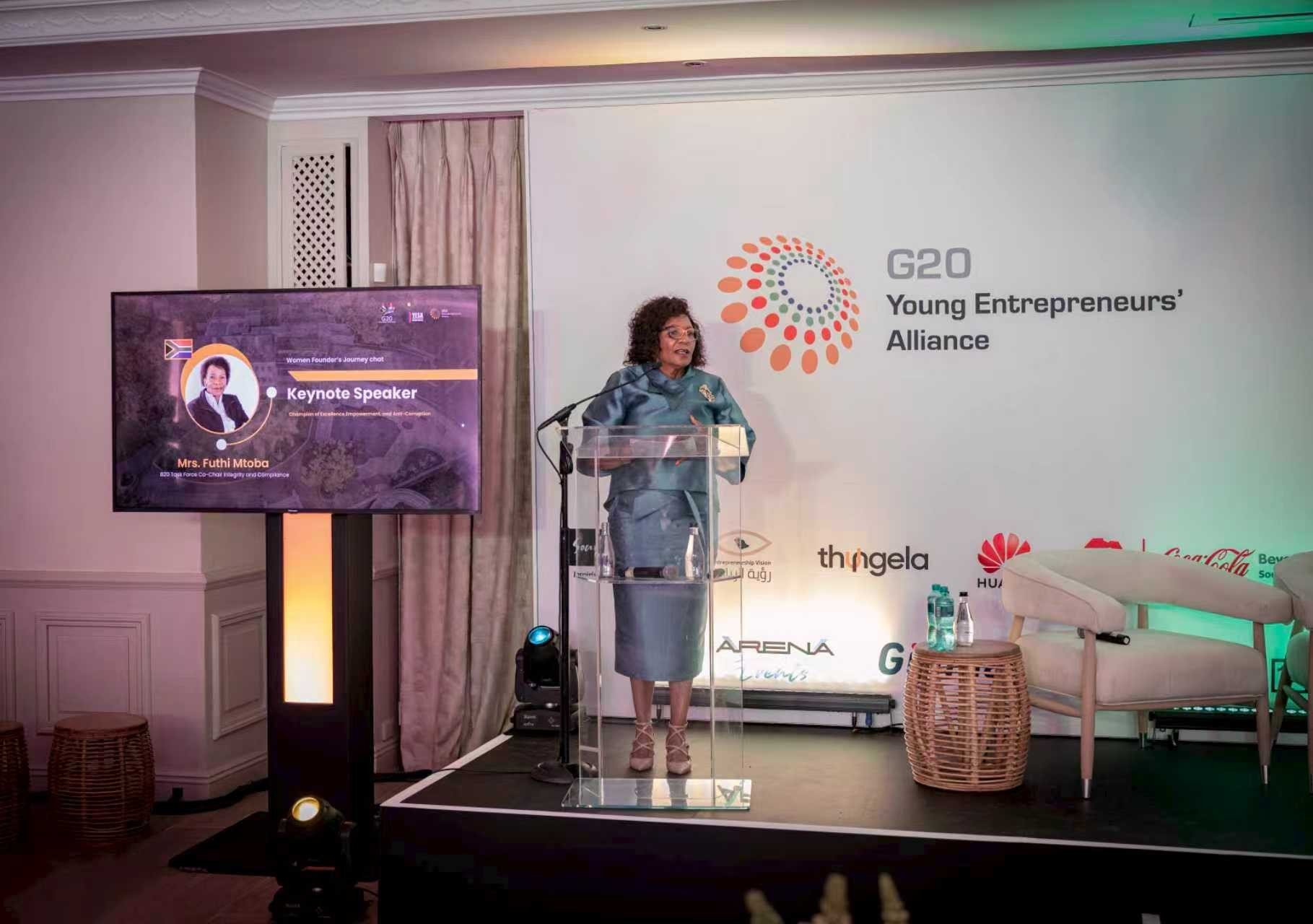 富蒂·姆托巴致辭。G20青年企業(yè)家聯(lián)盟中國總部供圖