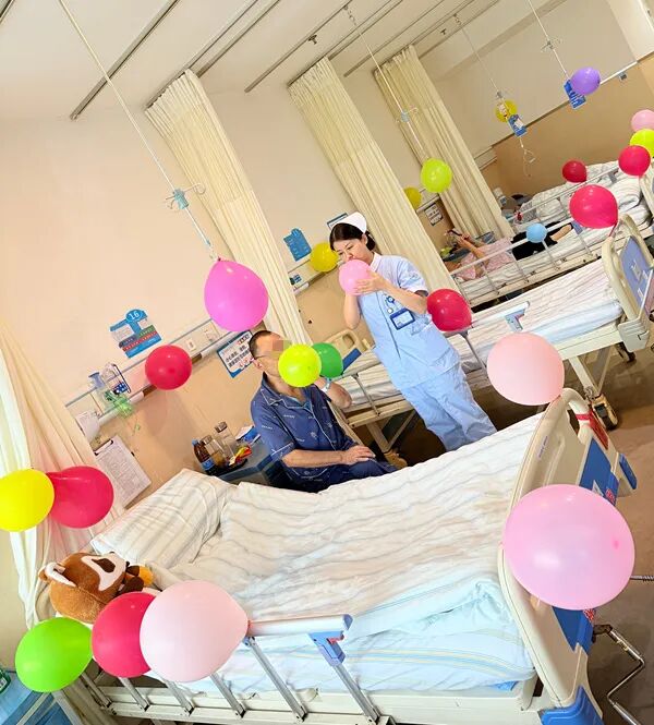 跟著這個(gè)方法練習(xí),楊叔叔的進(jìn)步肉眼可見:從一開始只能吹鼓小半只氣球,到后來能連續(xù)吹完兩三只;從吹氣球時(shí)會(huì)忍不住咳嗽,到胸口的緊繃感越來越輕,甚至能自己繞著病房走兩圈。如今,走進(jìn)楊叔叔的病房,粉、紫、綠、紅的氣球隨處可見,成了病房里最亮眼的裝飾?!澳憧?,這都是我這幾天吹的,每個(gè)護(hù)士進(jìn)來都會(huì)說好看,隔壁床病友也覺得好看!” 楊叔叔說起這些氣球,語氣里滿是自豪。