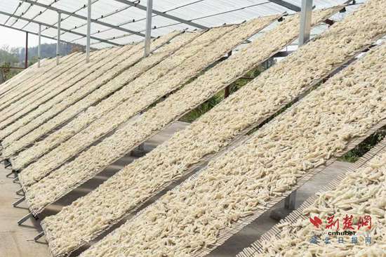 而這樣的環(huán)境催生了“豆絲”這一鄂州傳統(tǒng)美食。除了大米外,綠豆、黃豆、葛根等“豆絲”原材料生長在山溝、溪邊、林中。“每年入冬,幾乎家家起大灶開始制作豆絲,風(fēng)干后可以留存整個冬天?!敝軛罱榻B。