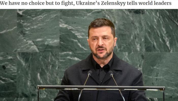 據(jù)聯(lián)合國官網(wǎng)發(fā)布的畫面,澤連斯基演講時換下了往常的套頭衫,選擇了更正式的黑色服裝。