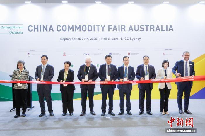 當?shù)貢r間9月25日,第二屆中國消費品(澳大利亞)品牌展在悉尼開幕。圖為中澳嘉賓為展會開幕剪彩?!≈行律绨l(fā) 中國商務部外貿發(fā)展事務局 供圖