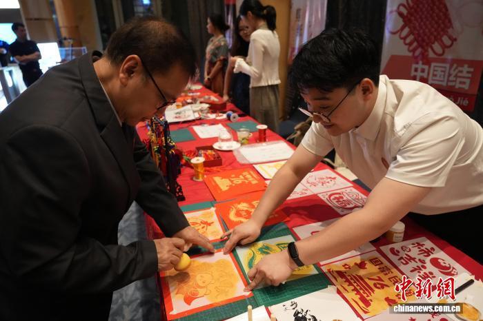 圖為嘉賓在中國文化展臺體驗拓印。記者 張興龍 攝