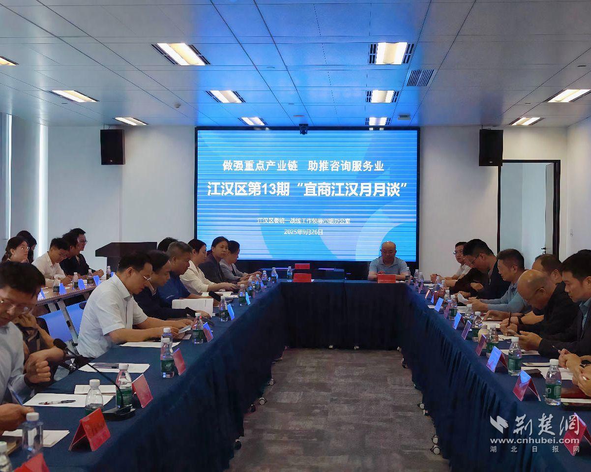 荊楚網(wǎng)(湖北日報網(wǎng))訊(記者 何婧 通訊員 蔡宇欣)在現(xiàn)代服務(wù)業(yè)加速奔跑的賽道上,咨詢服務(wù)業(yè)正成為鏈接資源、賦能產(chǎn)業(yè)的關(guān)鍵一環(huán)。如何讓“智庫”力量精準(zhǔn)發(fā)力、助推產(chǎn)業(yè)鏈條強(qiáng)健升級?9月26日,江漢區(qū)第13期“宜商江漢月月談”聚焦咨詢服務(wù)產(chǎn)業(yè)鏈,政企對話、直面問題、對癥開方,為打造高質(zhì)量發(fā)展新引擎架起溝通橋梁。