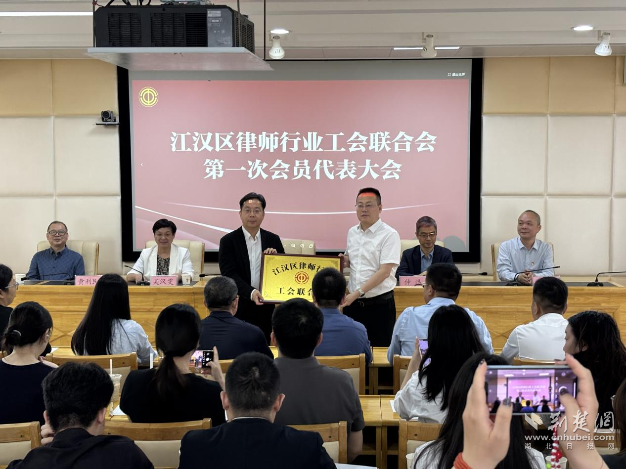 隨后,會議現(xiàn)場為江漢區(qū)律師行業(yè)工會聯(lián)合會進(jìn)行授牌,宣布江漢區(qū)律師行業(yè)工會聯(lián)合會正式成立。