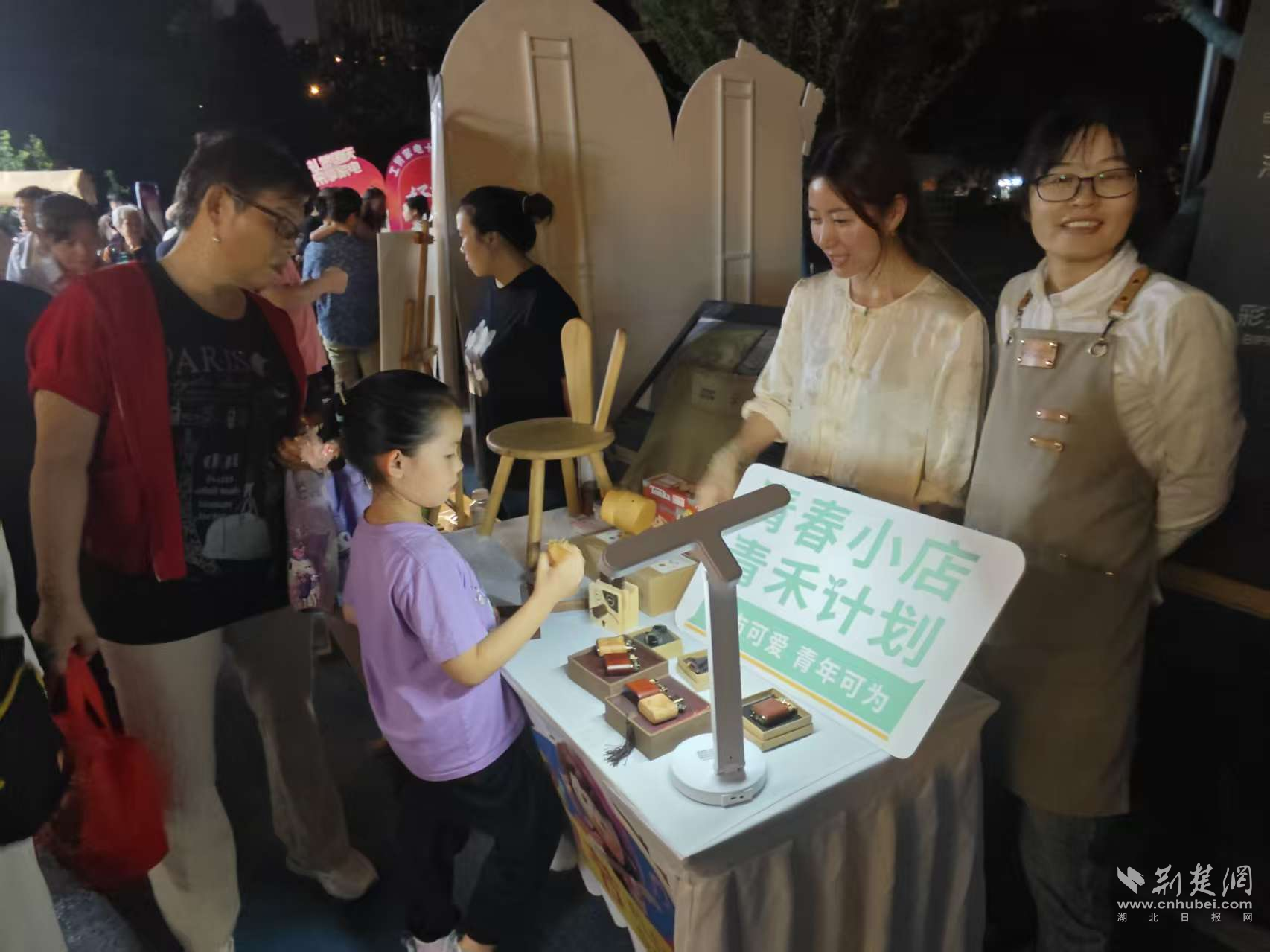 廣場(chǎng)另一側(cè)的主題市集同樣熱鬧非凡:景德鎮(zhèn)陶瓷、手工飾品、特色飲品琳瑯滿目,社區(qū)合伙人設(shè)置自然研學(xué)、木工DIY體驗(yàn)區(qū)成為親子家庭的熱門打卡點(diǎn);便民服務(wù)攤位貼心實(shí)用;“月餅品嘗區(qū)”和“祝福祖國(guó)簽名墻”人氣爆棚。居民李阿姨感慨道:“今天能和鄰居一起做手工、看節(jié)目、聊聊天,感覺(jué)特別溫暖,社區(qū)就像一家人?!?/p>