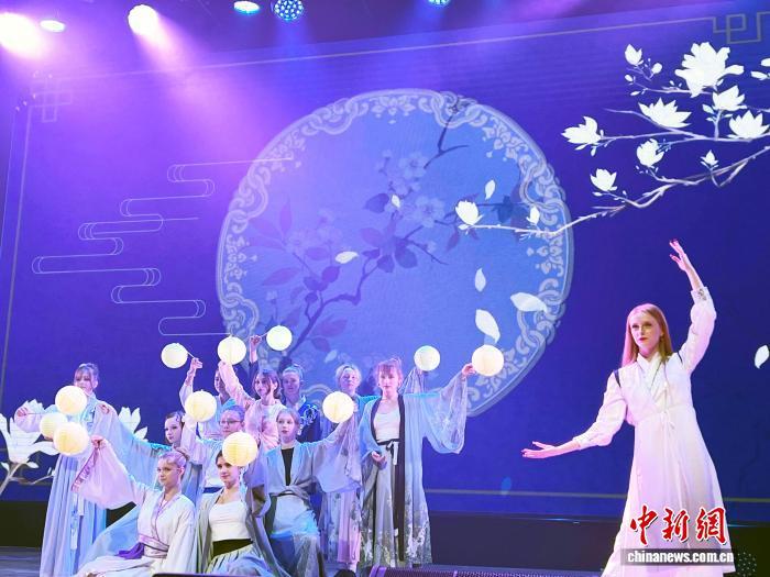 當(dāng)?shù)貢r間9月27日,“月滿華誕 同心共圓”中俄人文交流活動在莫斯科548學(xué)校舉行。圖為俄羅斯學(xué)生表演“燈籠舞”。中新網(wǎng)記者 田冰 攝