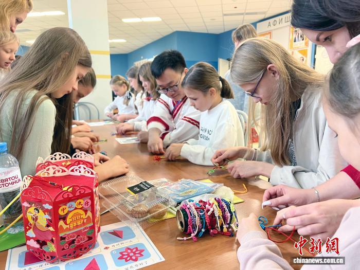 當(dāng)?shù)貢r間9月27日,“月滿華誕 同心共圓”中俄人文交流活動在莫斯科548學(xué)校舉行。圖為俄羅斯學(xué)生參加中華文化互動體驗活動。中新網(wǎng)記者 田冰 攝