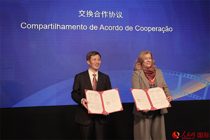 中央廣播電視總臺與巴西盒子媒體集團在第五屆巴西“中國影視作品展播季”活動中交換影視節(jié)目播出合作協(xié)議。人民網(wǎng)記者 時元皓攝