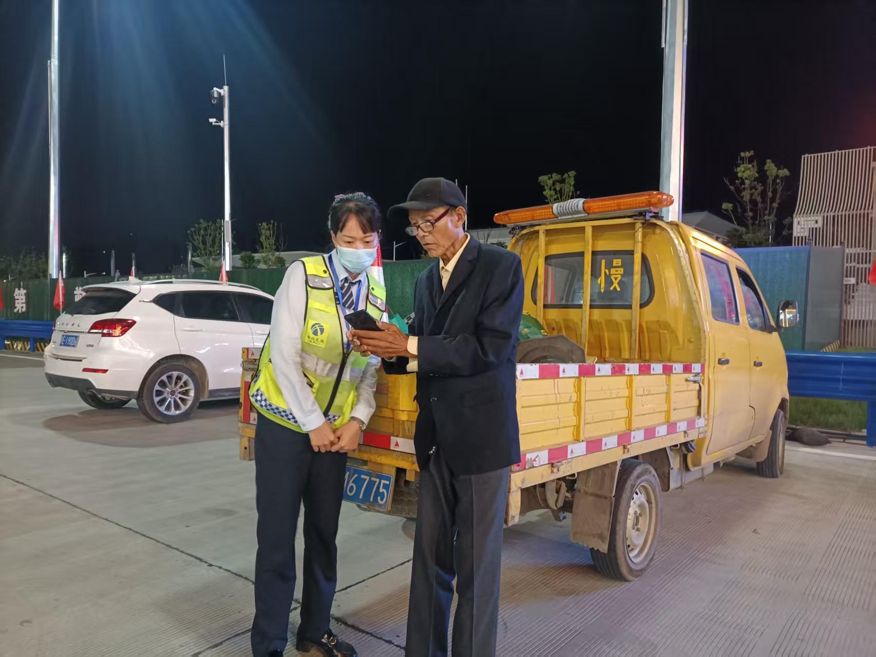 當(dāng)天凌晨2時許,一位老人茫然地站在孝感收費(fèi)站廣場上,神情低落,顯得不知所措。正在外場巡邏的收費(fèi)班長王燕玲發(fā)現(xiàn)了這一情況,便主動上前詢問。