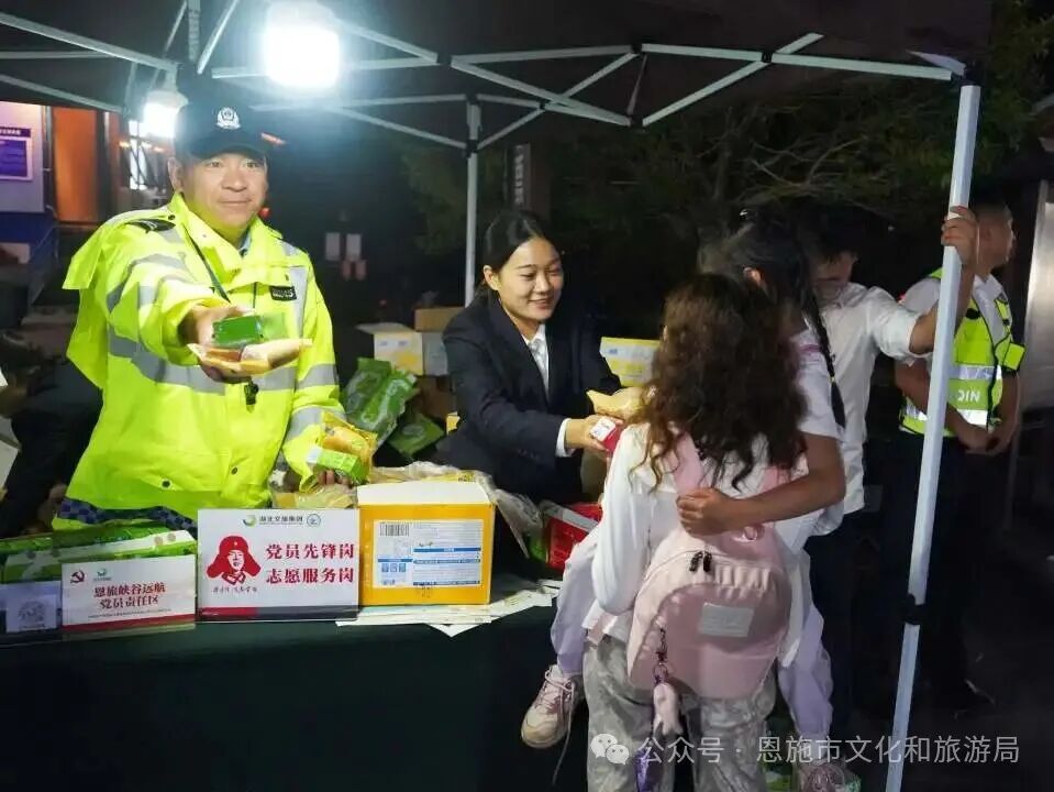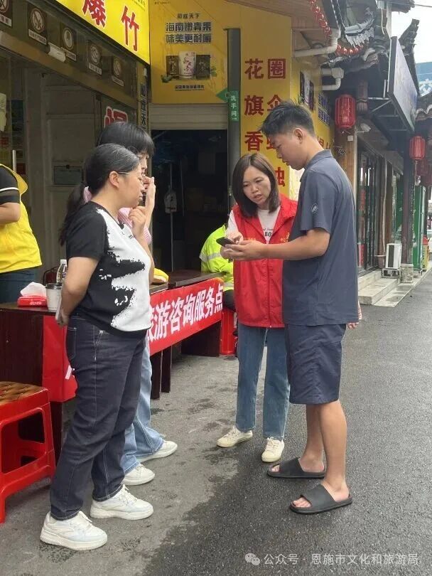 “暖心八條”措施直面游客便利出行,機(jī)關(guān)企事業(yè)單位停車場(chǎng)免費(fèi)對(duì)外開(kāi)放,被游客譽(yù)為“最實(shí)在的歡迎禮”。此外,全市組織的600余名志愿者,則是這種城市溫度的直接傳遞者,也構(gòu)成了恩施的另一道溫暖風(fēng)景。在高速路口,志愿者小沈正為一位風(fēng)塵仆仆的自駕游客遞上熱水:“我們不僅要解答咨詢,更要讓每一位來(lái)到恩施的游客感受到我們的熱情?!痹诰皡^(qū)入口處,穿著紅馬甲的志愿者耐心引導(dǎo)即將入園的游客,他們的微笑成為恩施最美的風(fēng)景線。