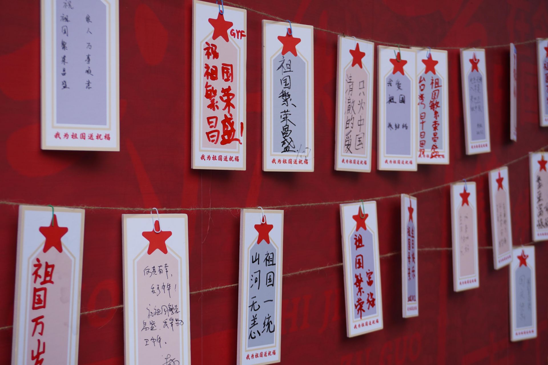 祝福傳遞,匯聚萬千心聲: 景區(qū)出口處的“我為祖國送祝?!笨ㄆ瑝ξ姸嘤慰蛥⑴c。一張張寫滿真摯祝福的卡片,匯成了對祖國母親的深情告白墻。